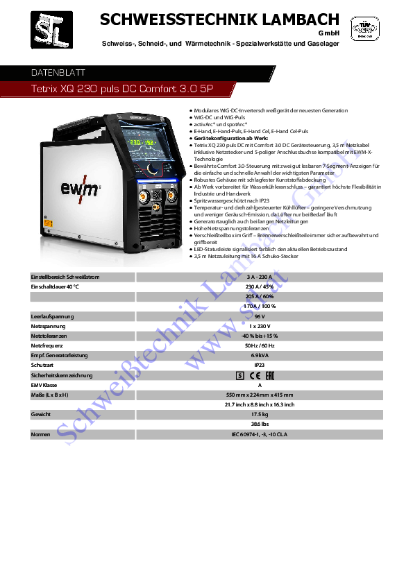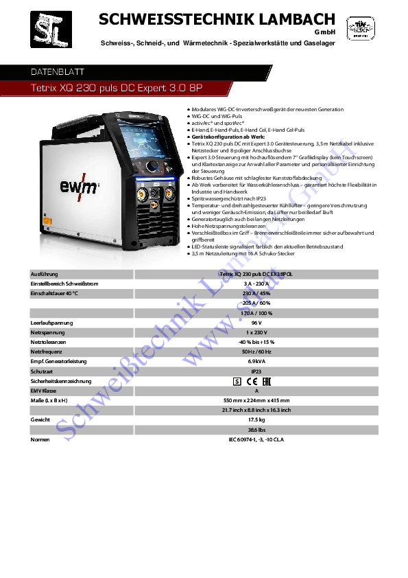 Tetrix XQ 230 puls DC, inklusive aller Kennlinien und Funktionen