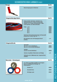 Reiniger SCHWEISSTECHNIK LAMBACH GmbH Düsenreinigungssatz im Blechetui Best.Nr.: 00646 Autogenschlauchgarnituren Autogenschläuche Manometer - Schutzkappen Fertig montierte Garnituren, bestehend…