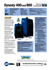 Ausgabe Feb. 2018 • Index-Nr. ADM/50.0 DE Dynasty®400und 800 WIG/E-Hand Schweißstromquelle KurzInfo Industrielle Anwendungen Aluminium-Verarbeitung Schwerindustrie Rohrleitungsbau Luft- und…