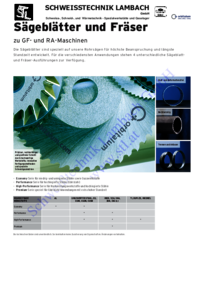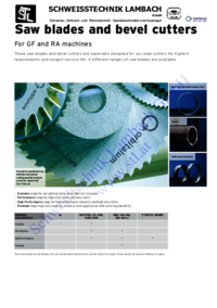 Saw SCHWEISSTECHNIK LAMBACH GmbH Schweiss-, Schneid-, und Wärmetechnik - Spezialwerkstätte und Gaselager blades and bevel cutters For GF and RA machines These saw blades and bevel cutters are…