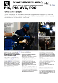P16, SCHWEISSTECHNIK LAMBACH GmbH Schweiss-, Schneid-, und Wärmetechnik - Spezialwerkstätte und Gaselager P16 AVC, P20 Rohreinschweißköpfe Einfache Handhabung bei hoher Wirtschaftlichkeit und…