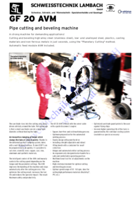 GF SCHWEISSTECHNIK LAMBACH GmbH Schweiss-, Schneid-, und Wärmetechnik - Spezialwerkstätte und Gaselager 20 AVM Pipe cutting and beveling machine A strong machine for demanding applications!…