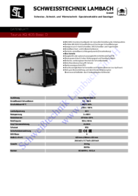 SCHWEISSTECHNIK LAMBACH GmbH Schweiss-, Schneid-, und Wärmetechnik - Spezialwerkstätte und Gaselager DATENBLATT Taurus XQ 405 Basic D MIG/MAG-Inverterschweißgerät mit manueller Einstellung des…