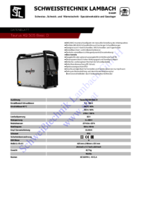 SCHWEISSTECHNIK LAMBACH GmbH Schweiss-, Schneid-, und Wärmetechnik - Spezialwerkstätte und Gaselager DATENBLATT Taurus XQ 505 Basic D MIG/MAG-Inverterschweißgerät mit manueller Einstellung des…
