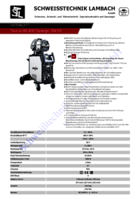 SCHWEISSTECHNIK LAMBACH GmbH Schweiss-, Schneid-, und Wärmetechnik - Spezialwerkstätte und Gaselager DATENBLATT Taurus XQ 400 Synergic DW MIG/MAG-Inverterschweißgerät mit separatem…