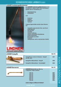 SCHWEISSTECHNIK LAMBACH GmbH LINDNER Hochleistungsflämmbrenner Der LINDNER Hochleistungsflämmbrenner ist ein Profi-Brenner: kraftvoll, stabil, sicher und funktionsgeprüft. Ideal zur Verarbeitung von:…