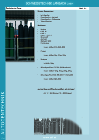 Technische Gase SCHWEISSTECHNIK LAMBACH GmbH Unsere Gasservices: • Leihflaschen • Eigenflaschen - Verkauf • Eigenflaschen - Füllservice • Tauschflaschen Sortiment: • Helium • CAR 18 • CAR 2 • Argon…