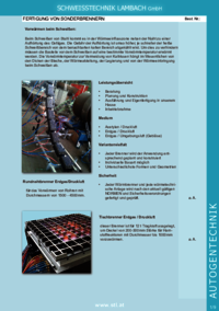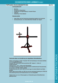 SCHWEISSTECHNIK LAMBACH GmbH FERTIGUNG VON SCHWEISSSTATIVEN Leistungsübersicht • Beratung • Planung und Konstruktion • Ausführung und Eigenfertigung in unserem Hause • Lieferung • Aufstellung in…