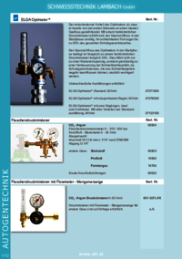 SCHWEISSTECHNIK LAMBACH GmbH ELGA Optimator ® Flaschendruckminderer Der entscheidende Vorteil des Optimators ist, dass er bereits von der ersten Sekunde an einen idealen Gasfluss gewährleistet. Mit…