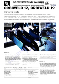SCHWEISSTECHNIK LAMBACH GmbH Schweiss-, Schneid-, und Wärmetechnik - Spezialwerkstätte und Gaselager ORBIWELD 12, ORBIWELD 19 Micro weld heads Extremely narrow design and yet highly durable thanks…