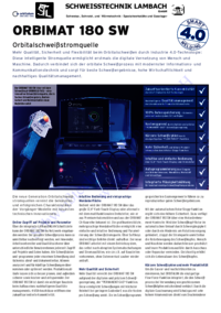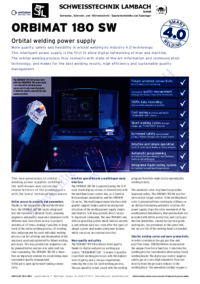 SCHWEISSTECHNIK LAMBACH GmbH Schweiss-, Schneid-, und Wärmetechnik - Spezialwerkstätte und Gaselager ORBIMAT 180 SW Orbital welding power supply More quality, safety and flexibility in orbital…