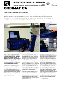 SCHWEISSTECHNIK LAMBACH GmbH Schweiss-, Schneid-, und Wärmetechnik - Spezialwerkstätte und Gaselager ORBIMAT CA Orbital welding power supplies Compact power supplies for mechanized TIG orbital…